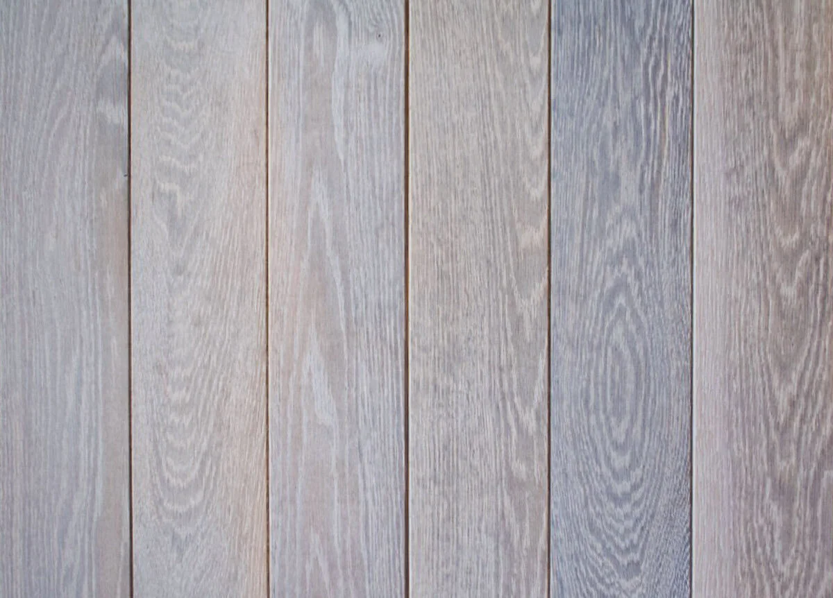 This process involves harsh chemicals and requires proper safety precautions, as the ammonia can be harmful if inhaled or if it comes in contact with skin. We offer a variety of finished wood products that give you the same antique look as European smoked/fumed wood, without using any harsh chemicals. We use a non-toxic product that reacts with the wood’s tannins to create a graying effect similar to the classic fuming process. This creates an antique look that works perfectly for a herringbone floor and for wall cladding as well.