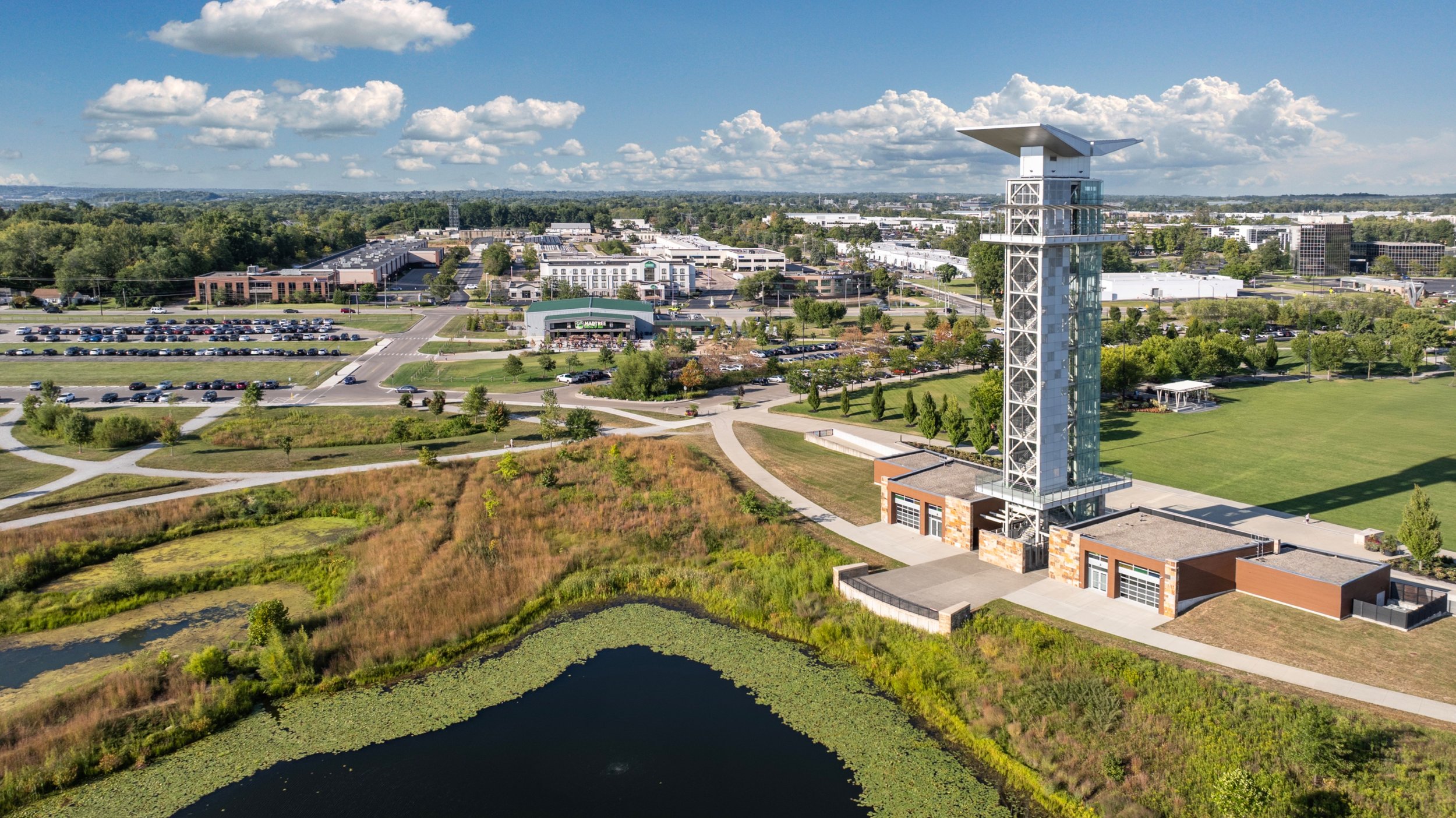 MadTree Brewing’s Parks & Rec at Summit Park is a brewery and social hub that extends the experience of the surrounding park into the built environment. The design emphasizes openness and flexibility, with large, operable windows providing light and fresh air. Natural materials—most notably reclaimed sawmill oak paneling—anchors the interior, bringing warmth and a tactile sense of authenticity that reflects the project’s connection to place.