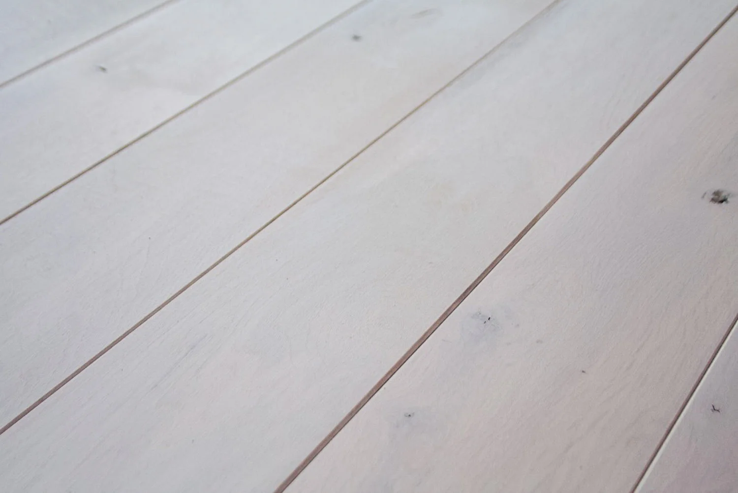 For a modern and elegant effect, Anthology Woods Pearly Oak adds a timeless and ethereal backdrop to any interior space. Our specialty frosted white finish adds an immaculate neutral tone, evoking tranquility and spaciousness. You’ll see soft cerused grain patterning beneath the ivory white tones, creating subtle visual interest and alluring texture. Colors range from light alabaster to silky silver-grey, and character could include tight knots, checks and a variety of softened grain patterns, depending on the oak base.