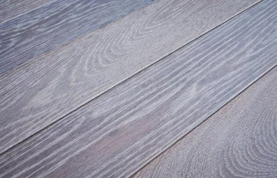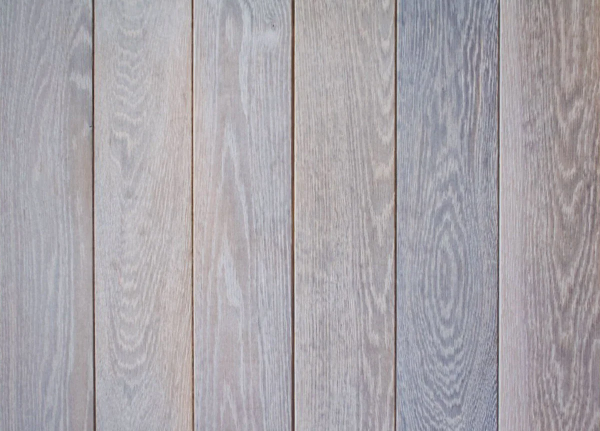 European Fumed Oak Flooring & Wall Paneling with Flat-Sawn Character & Cerused Gray/White Finish